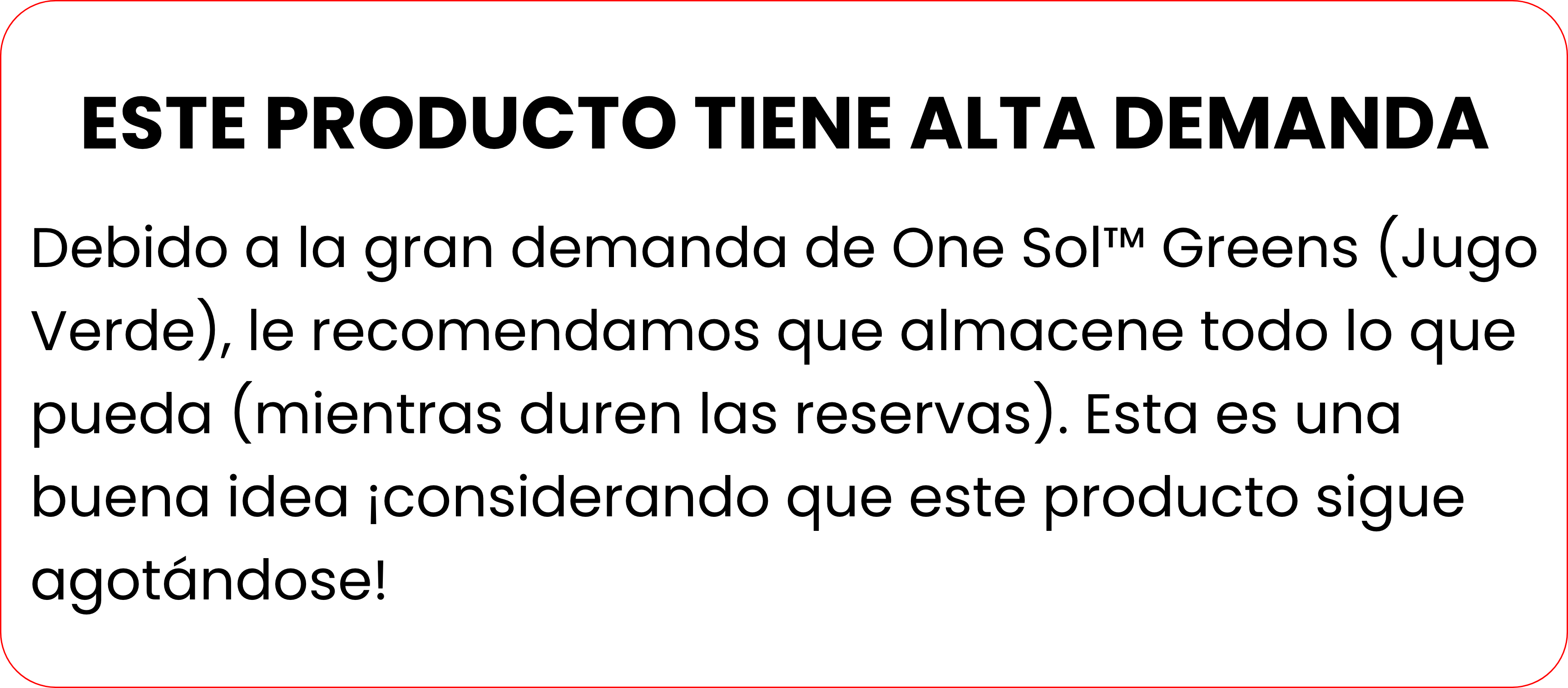 Cada porción de ONE SOL Greens contiene al menos 5000 mg de nuestra mezcla Super Greens. Esto asegura que obtengas todos los nutrientes que necesitas.